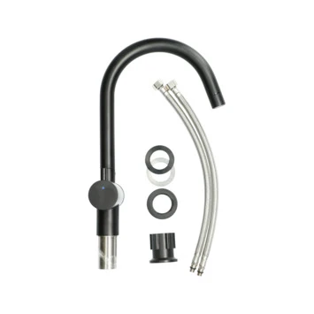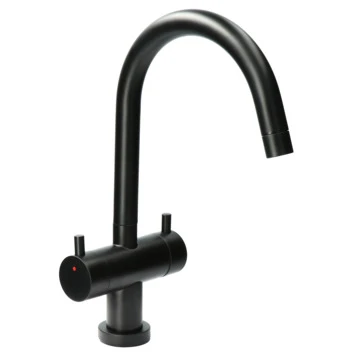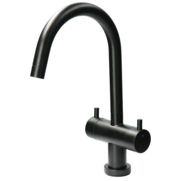 De Atlantic keukenkraan Adrian 2-knops Zwart bestaat uit een mat zwarte keukenkraan van 33,5 cm hoog met 2 flexibele aansluitslangen, bevestigingsmateriaal en montagehandleiding. De Adrian keukenkraan heeft een draaibare uitloop van 360° waarmee je eenvoudig plaats maakt bij je gootsteen. Met de 2 draaiknoppen kies je hoeveel warm of koud water je wil gebruiken. Aan de anti-kalk perlator hecht kalk zich moeilijk vast en veeg je er makkelijk met de hand af. Deze modern vormgegeven kraan heeft een mat zwarte afwerking en ziet er daardoor robuust uit. Gebruik alleen water en een zachte doek om de kraan schoon te maken. Gebruik geen schurend, bijtend, azijnhoudend of agressief schoonmaakmiddel. Besluit je de kraan te kopen? Dan heb je 5 jaar garantie.