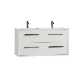 Tiger Badkamermeubel Boston 60 Cm Chalet Eik Met Polybeton Wastafel Wit En Ronde Grepen RVS