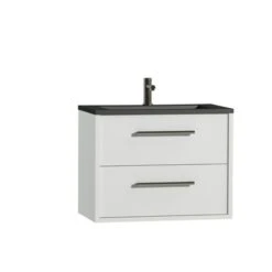 Tiger Badkamermeubel Boston 80 Cm Chalet Eik Met Polybeton Wastafel Mat Zwart En Ronde Grepen RVS