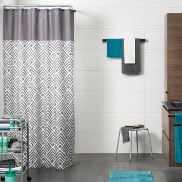 Geef je badkamer een moderne en stijlvolle uitstraling met het Sealskin Douchegordijn Angoli Grijs 180×200 cm. Het is een textiel douchegordijn gemaakt van 100% polyester en is voorzien van een waterafstotende coating. Uitgevoerd in trendy grijs en met de moderne geometrische print draagt dit product bij aan de moderne uitstraling van je badkamer. De afmeting van 180×200 cm maakt je douchegordijn geschikt voor toepassing in een nis of hoek van de badkamer. Dit product is tevens machine wasbaar op 30°C.