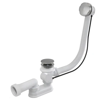 Universele bad afvoer/-overloop 57 cm inclusief sifon. Passend op baden met een afvoergat met diameter 50/52 mm. De chromen draaiknop bedient de afvoer.