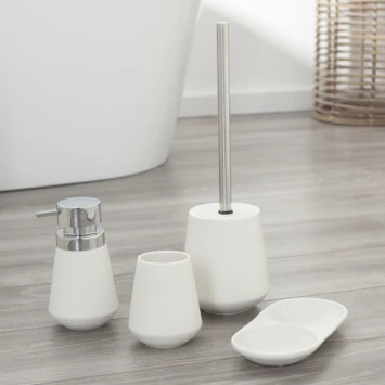 De Conical serie kenmerkt zich door de moderne conische vorm, een echte eyecatcher voor de badkamer of toilet. Gebruik de tray om de zeeppomp en de beker op te plaatsen voor een mooi opgeruimd geheel. Uitgevoerd in wit met chroom voelt deze set zich thuis in iedere badkamer.