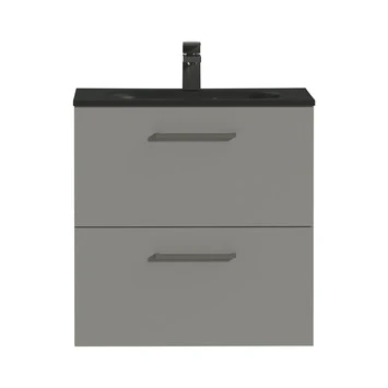 Dit badkamermeubel is onderdeel van de Tiger Studio serie. Dit is een serie met enorm veel varianten met een kleine aanpassing. Denk daarbij aan afmetingen, kleur, vorm, etc. Deze variant heeft een mat-grijze onderkast met 2 lades, met vierkante grepen en een softclose ladesysteem. Dat wil zeggen dat de lades altijd zachtjes sluiten. Dit voorkomt schade aan het houtwerk wanneer je per ongeluk de lades te hard dicht doet. De lades bieden voldoende ruimte om handdoeken en andere sanitaire spullen in op te bergen. De onderkast, met een breedte van 60 cm, heeft een mat zwarte wastafel van polybeton. Hoewel deze op de afbeelding misschien met kraan te zien is, wordt dit badmeubel exclusief kraan en sifon verkocht. Gelukkig heeft GAMMA ook een breed assortiment met kranen. Dankzij de duidelijke handleiding en meegeleverd bevestigingsmateriaal kun je eenvoudig zelf de montage uitvoeren. Tot slot zit er 3 jaar garantie op alle badmeubelen binnen de Tiger Studio serie. Mocht dit Tiger Badkamermeubel Studio 60 cm Mat Grijs met Polybeton Wastafel Mat Zwart en Vierkante Grepen het net niet helemaal zijn, kijk dan vooral nog even verder in de GAMMA webshop. Er is vast en zeker een passende maat en kleurencombinatie te vinden!