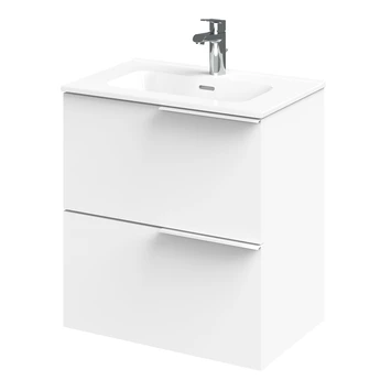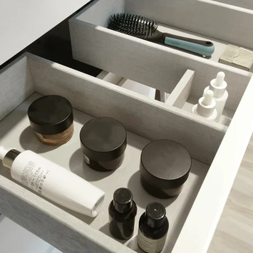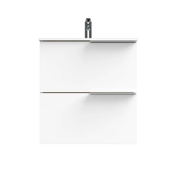 Haal het maximale uit je badkamer met deze wastafelonderkast in Scandinavische stijl. Het strakke design is simpel maar elegant. Deze slimme kast heeft een diepte van slechts 39 cm. Ideaal voor de kleinere badkamer. Dankzij haar effen lijnen laat hij de ruimte groter ogen. De ruime lades zijn uitgerust met Hettich softclosegeleiders en de binnenzijde heeft een trendy afwerking in textiel. Daarnaast zijn de matwitte grepen perfect in het geheel verwerkt. De luxueuse afwerking in hoogglans wit zorgt voor een frisse en ruimtelijke look.