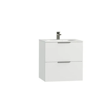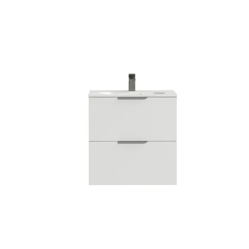 Tiger Studio Badkamermeubel 60 Cm Hoogglans Wit Met Wastafel Polybeton Mat Wit Greep Rvs Plat